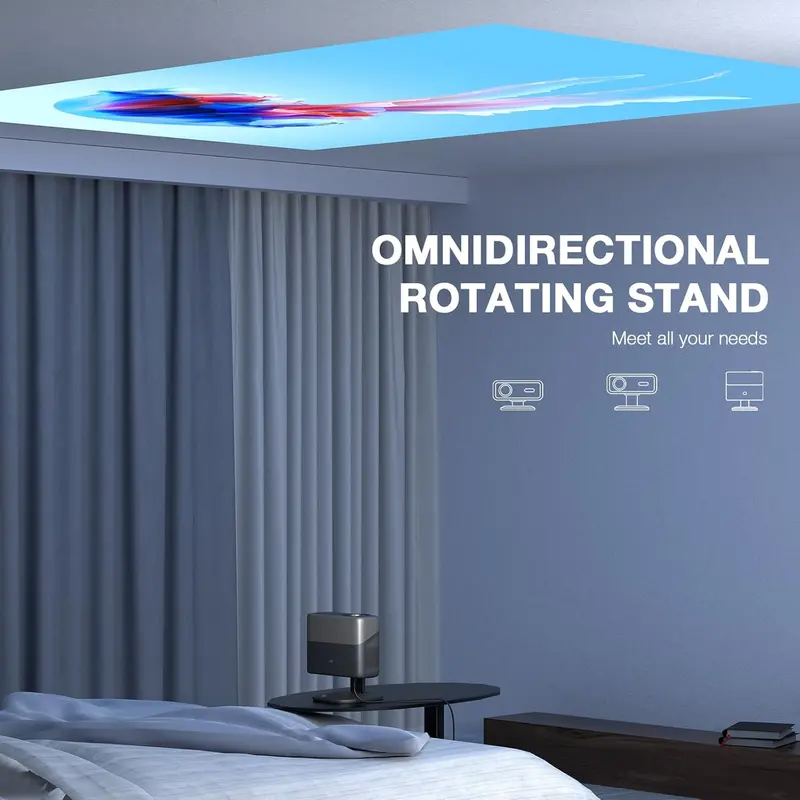 [Unique Removable and Foldable Stand]The Auking movie projector comes with an adjustable stand that allows you to easily project onto walls or ceilings, enabling you to watch movies at any angle. This means you can enjoy films comfortably whether sitting or lying down. Unlike traditional integrated stands, Outdoor projector stand is removable and foldable, making it ideal for outdoor use. Its compact design ensures easy portability without sacrificing stability. When you don’t need the stand, simply remove it for more convenience.