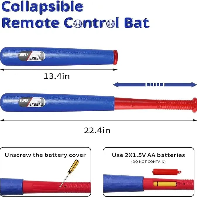 Extendable Bat: The baseball bat is 22.4 "when extended and 13.4" when retracted, it is very convenient to store and carry. The plastic baseball bat is made of high quality ABS material, which is lightweight and durable. Requires 2 x "AA" batteries (not included).