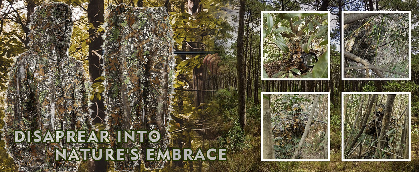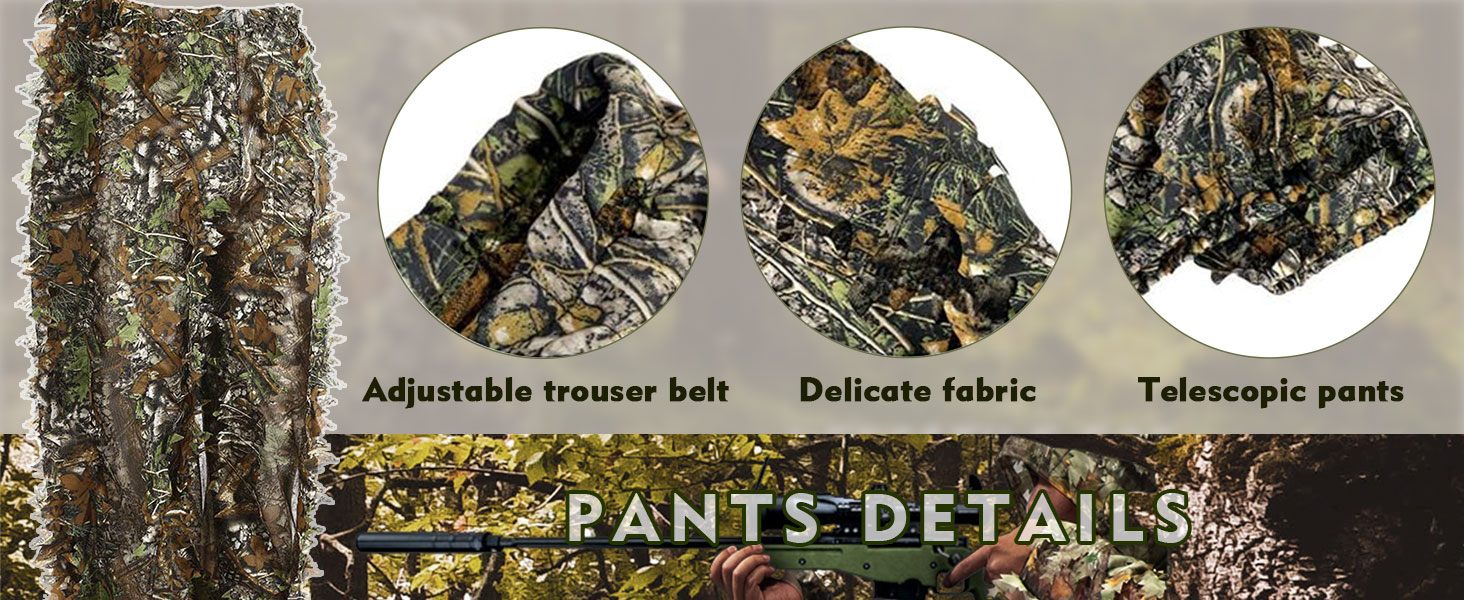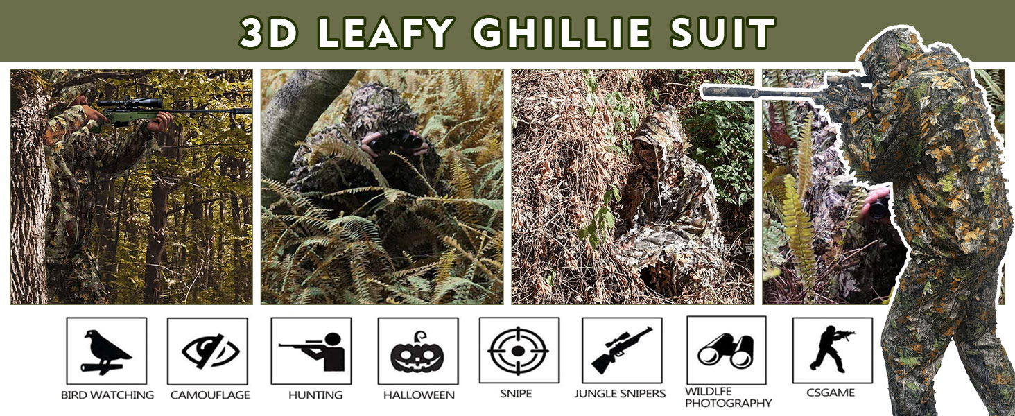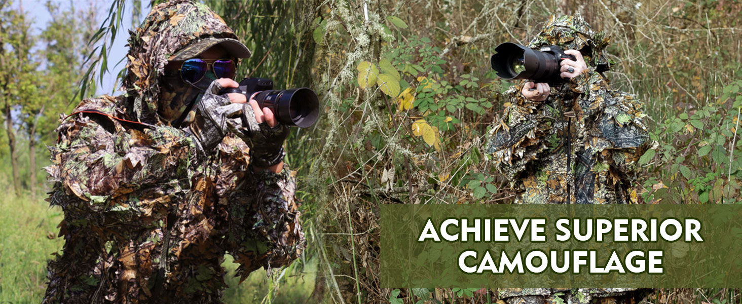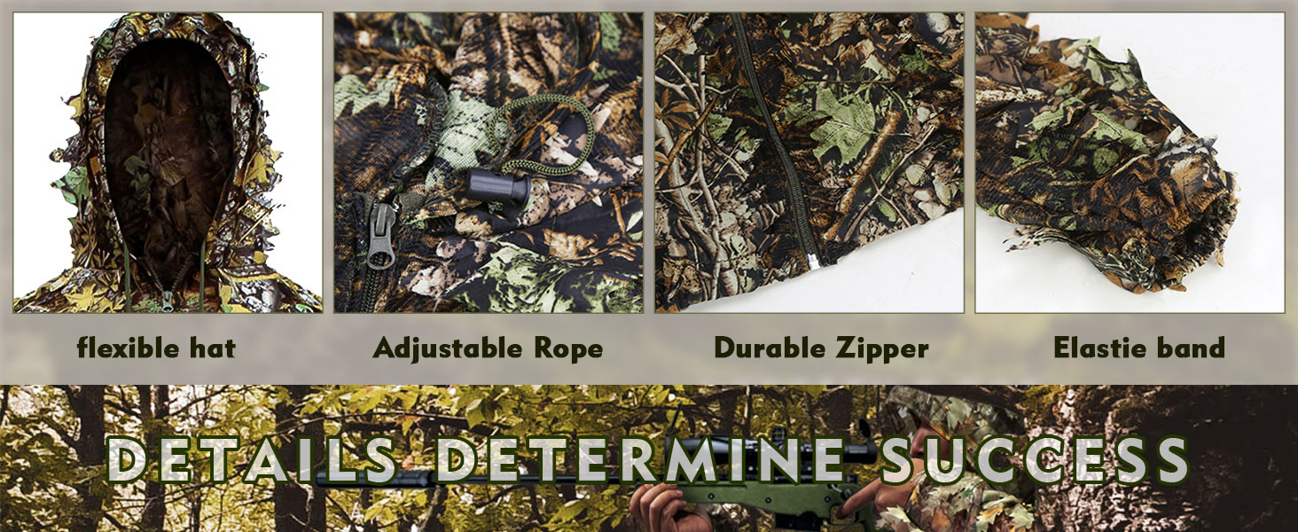 Multifunctional Application - A hooded jacket will provide better hiding. It has enough texture and camouflage effects that won't be noticed when you get close to the target. 3D leaf design suits help you finish tasks in a perfect camouflage environment. It also can be used for Hunting, Paintball, Wildlife Photography, Film Sets, Kids Play Dens, Tree Houses, etc.