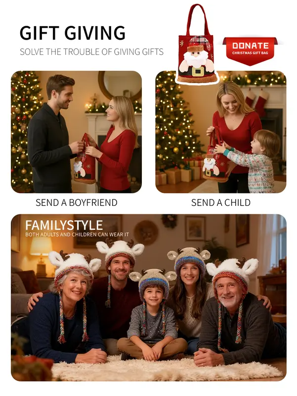 ✨Original design Christmas Knitted Warm Antler Hat🦌 (It can be used as a handbag)