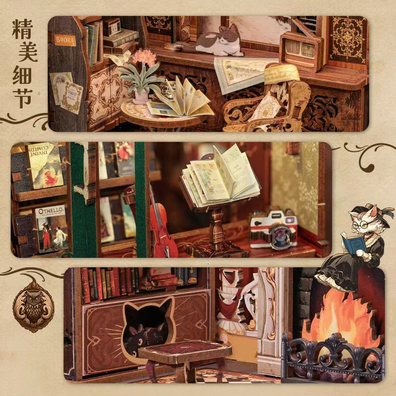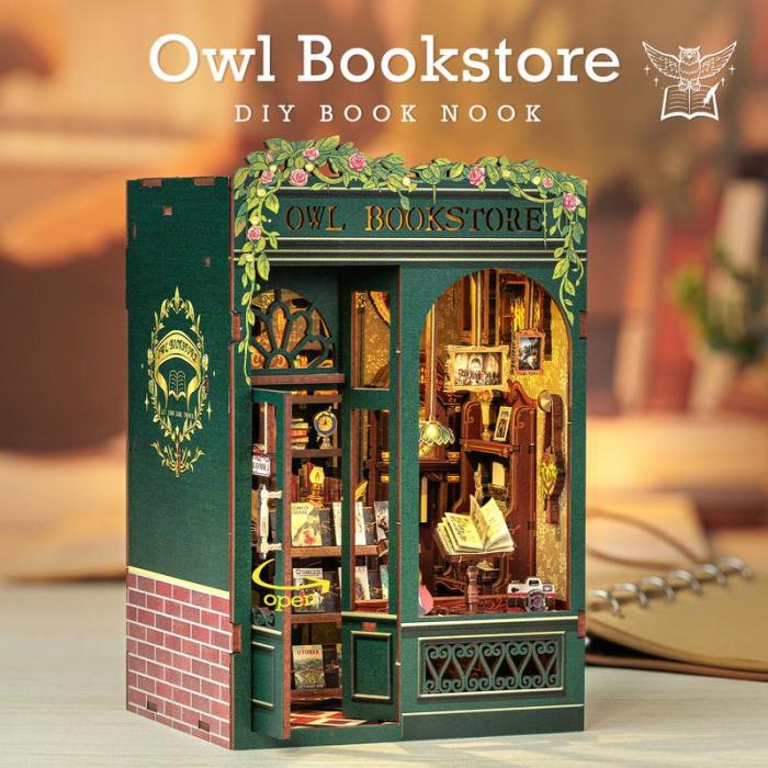 【OWL BOOKSTORE】DIY bookcase with LED lights,Creative DIY toys. Best Gift For Kids